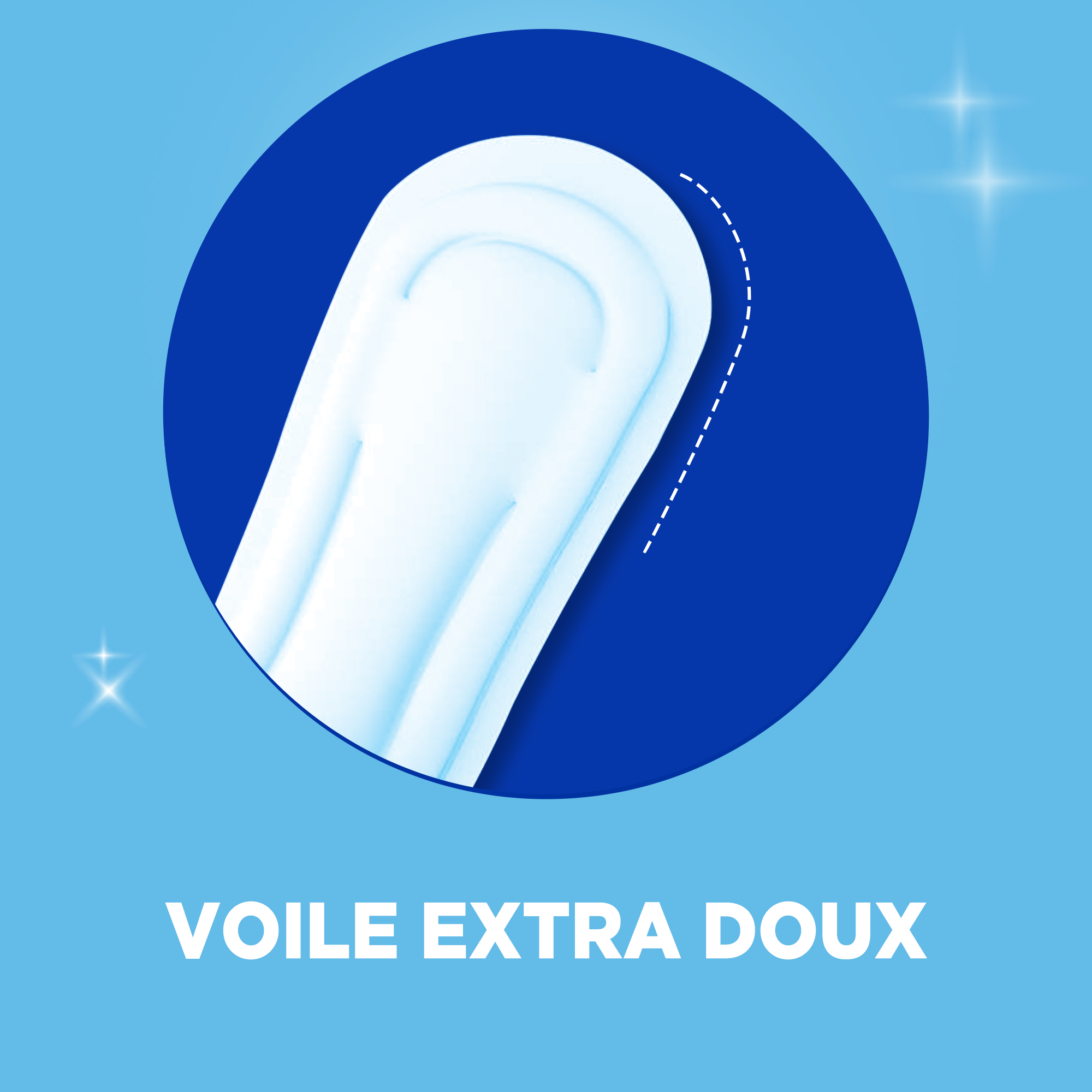 Composées de fibres ultra souples et d’un nouveau voile extra doux, les serviettes Vania® Maxi Confort vous procurent un confort incroyable, le jour comme la nuit.